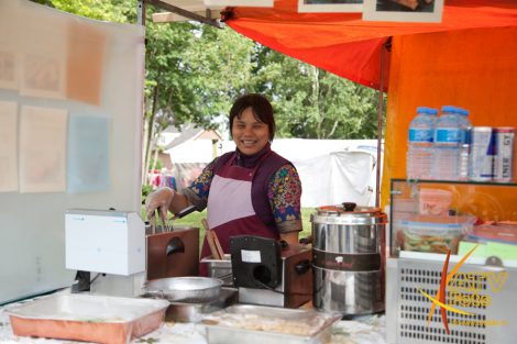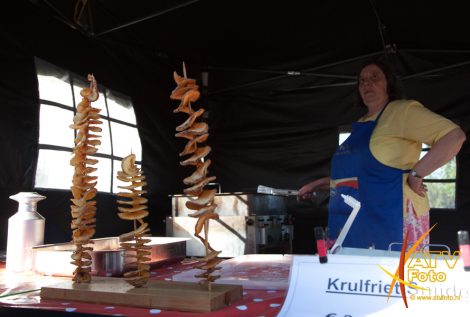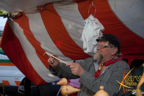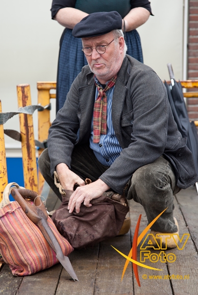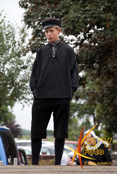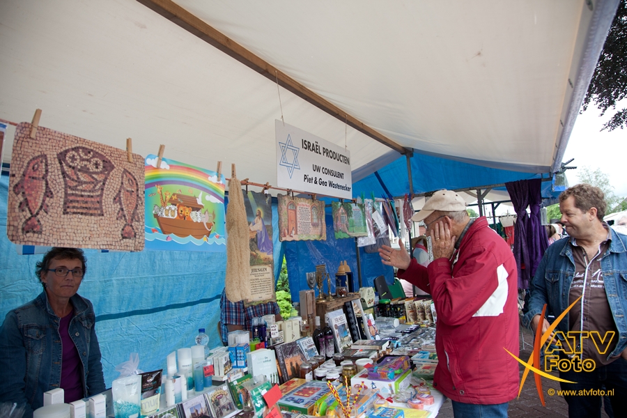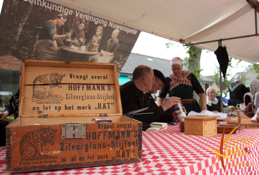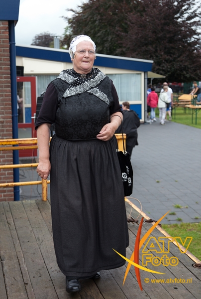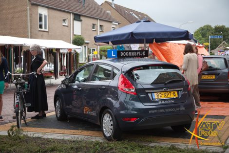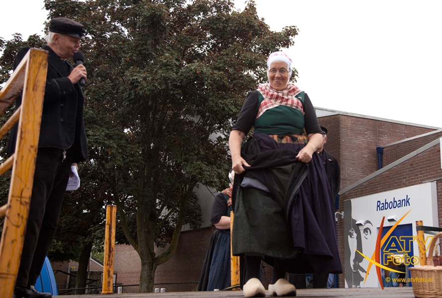 Mevrouw F. Pas – Opperman uit Apeldoorn stond dit jaar voor de 25e keer op de boerenmarkt in Doornspijk. Ze verkoopt in Doornspijk al 25 jaar zelfgemaakte sieraden en poppenkleertjes. Ze heeft nooit verzuimd om te komen en is altijd in traditionele klederdracht aanwezig. Zij was nu niet in klederdracht vanwege het slechte weer.