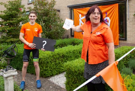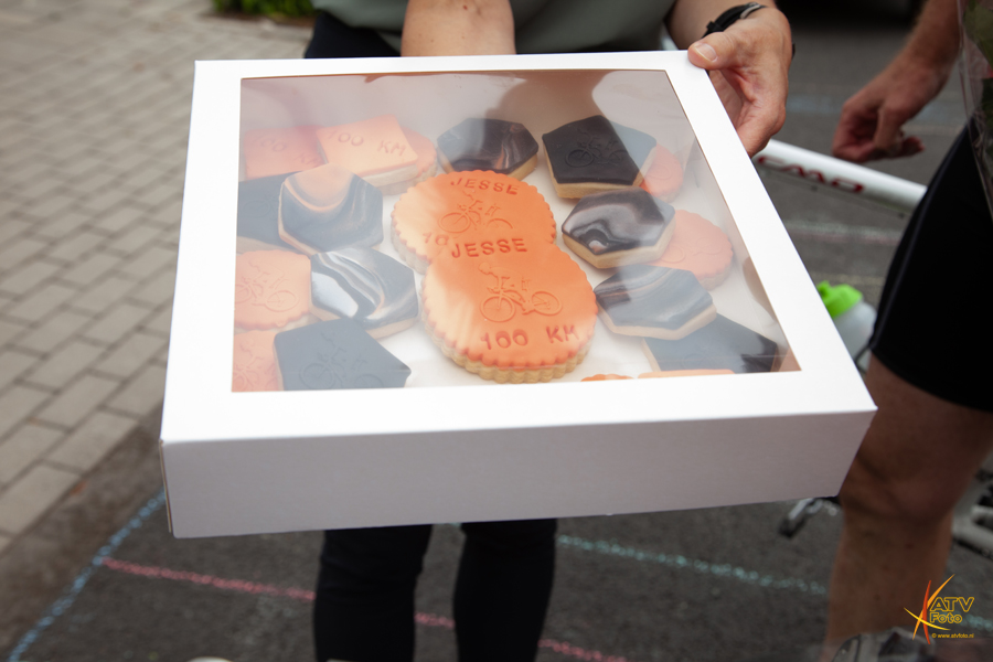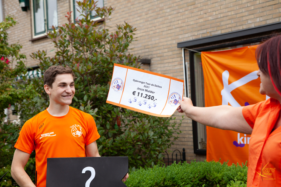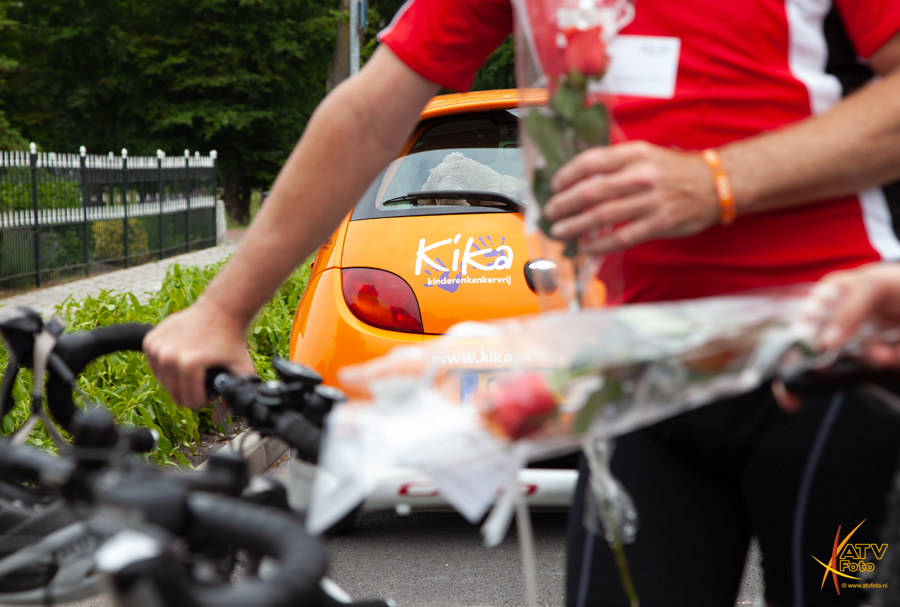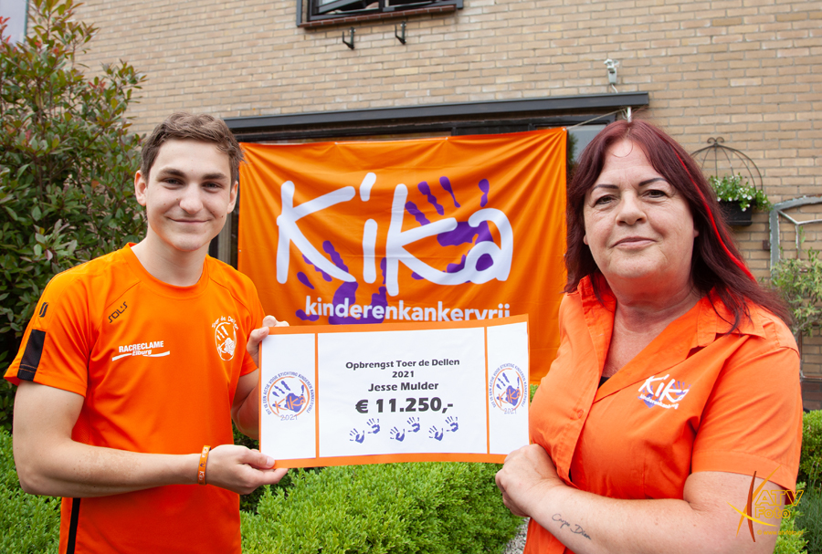 Na iedere ronde werd er thuis enthousiast op hen gewacht, door opa en oma, de buren en andere belangstellenden. Jettie Kamphof nam de cheque met het prachtige bedrag van € 11.250,00 euro in ontvangst bestemd voor KIKA. Inmiddels heeft Jesse een totaal bedrag van € 56.000,00 euro bij elkaar gefietst voor KIKA.. en zo’n €120.000,00 euro aan mobieltjes ingezameld voor Stichting Opkikker..