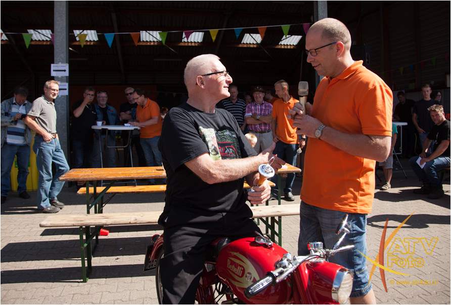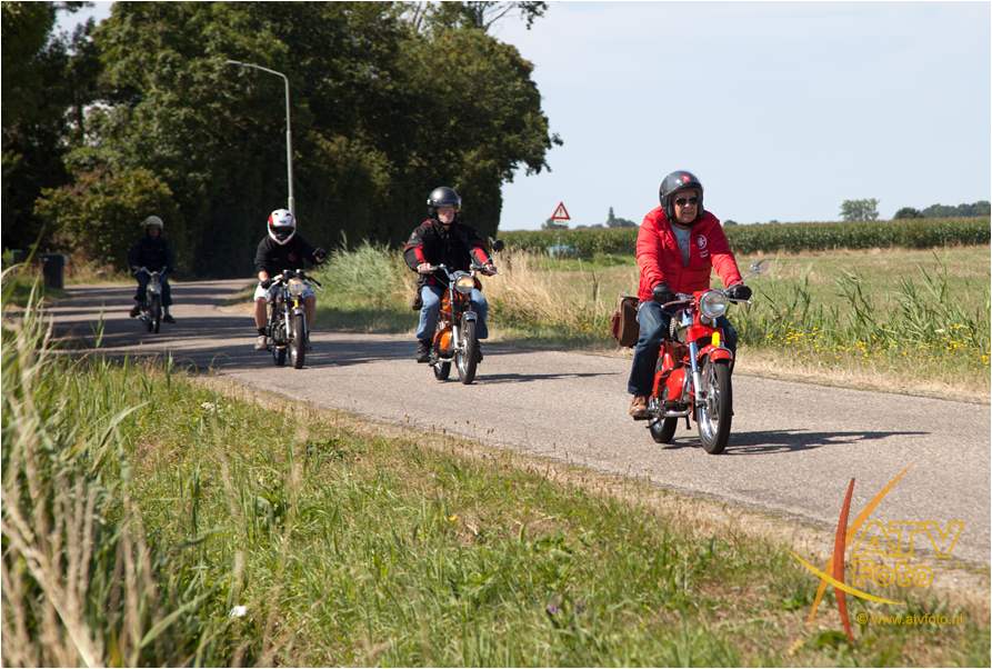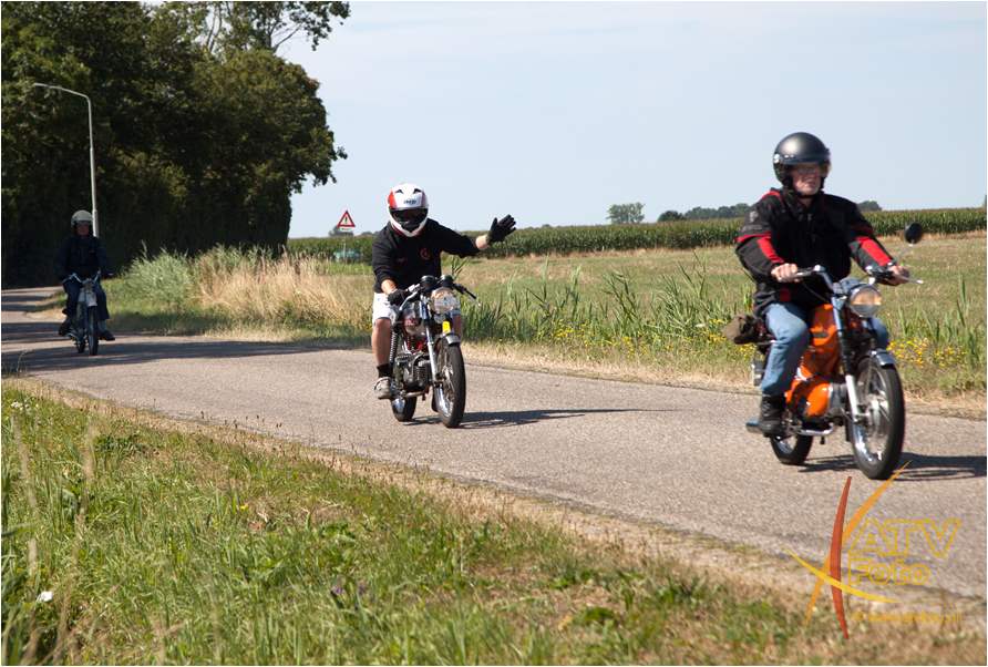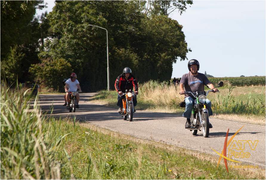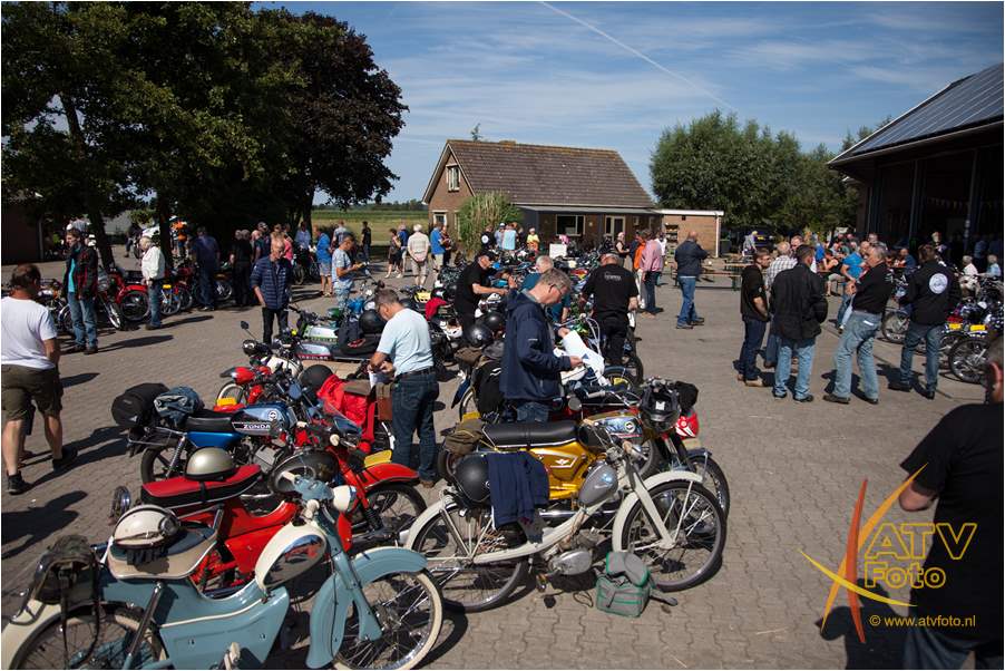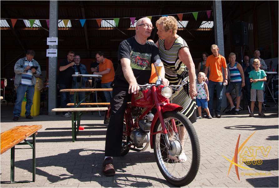 Oranjevereniging Moed & Vertrouwen Doornspijk kijkt met een super gevoel terug op de 10 editie van de oldtimerrit. Om deze editie speciaal te laten zijn, is het evenement verhuisd naar het terrein van Kokalf aan de Veldweg in Doornspijk. En werd geprobeerd naast de ritten een onderdelen markt op te zetten. Helaas is dit niet van de grond gekomen. Maar wat bijzonder was dat er op deze dag 135 oldtimer bromfietsen mee deden aan de rit. Dit is een record. Zo’n 64 oldtimer trekkers reden de mooie uitgezette route. De trekkers ging voor de pauze richting Nunspeet, na de pauze vertrok de stoet richting Hoge enk en ’t Harde. Deze keer was de 90 kilometer lange bromfietsroute helemaal uitgezet en bewegwijzerd. De brommers gingen richting Elburg, Harderwijk, Uddelemeer en uiteindelijk via de Dellen weer richting Doornspijk. Winnaar van de mooiste trekker was dhr. B. Westerink uit Hulshorst met zijn Farmall mc Cormick. De winnaar bij de brommers was Ruurd Kloosterman uit Burgum Friesland met zijn Benellie. Mede dankzij de hulp van diverse personen kon dit allemaal gerealiseerd worden. Gelukkig was het prachtig weer, scheen het zonnetje. Na twee edities met veel regen kon het evenement dit ook goed gebruiken. Iedere deelnemer kreeg bij aanvang een bordje voor op de brommer of trekker en na afloop een mooi bieropener. Locatie voor volgende jaar 6 juli 2019 is zoals het nu lijkt wederom Kokalf.