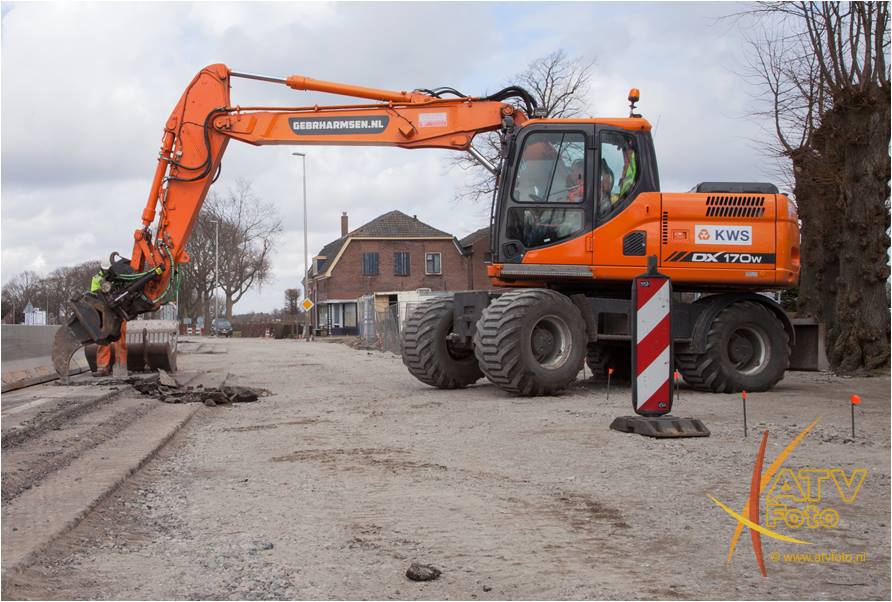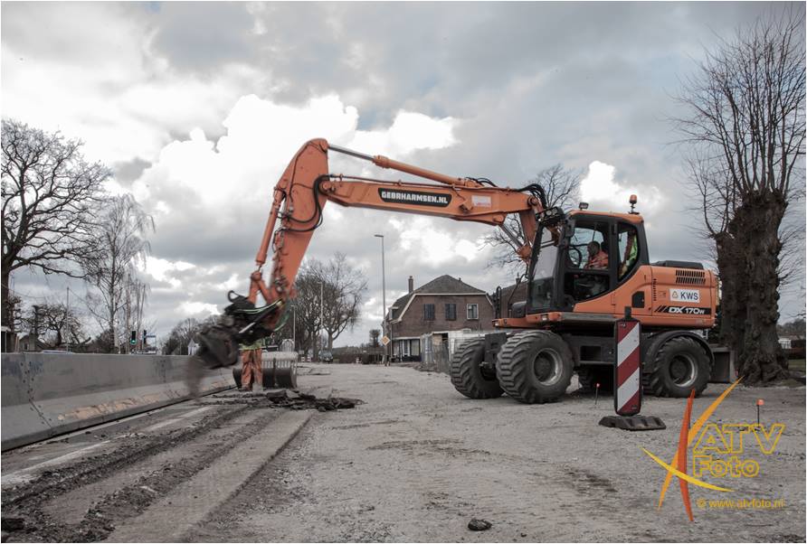 Vandaag werd van de N310 Zuiderzeestraatweg in Doornspijk een stuk asfalt verwijderd om een middengeleider (veilige oversteek) voor de fietsers te creëren. Tijdens deze reconstructie is het de bedoeling dat de Oude Harderwijkweg haaks aangesloten zal worden op de Zuiderzeestraatweg. Alles voor de veiligheid.