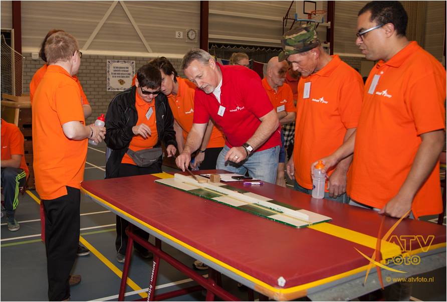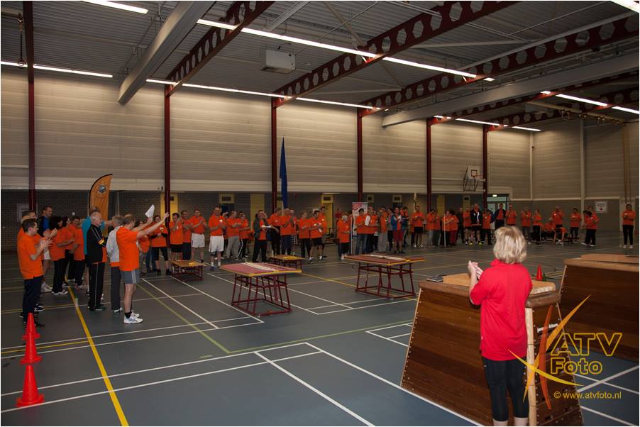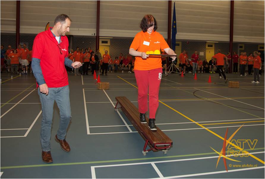 De middag werd officieel geopend met het Wilhelmus en het doorknippen van het lint door Marian Gerrits, medewerker van de afdeling Verpakken & Montage in Nunspeet. Na een warming-up op de muziek van “Heb je even voor mij” van Frans Bauer, gingen de Spelen van start.