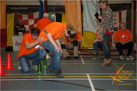 De deelnemers moesten tegen elkaar verschillende onderdelen afleggen die bestonden uit: spijkerpoepen, blindemannetje, kegelen, in de roos schieten en nog veel meer. Als afsluiter werd een gezamenlijk estafettespel gespeeld.