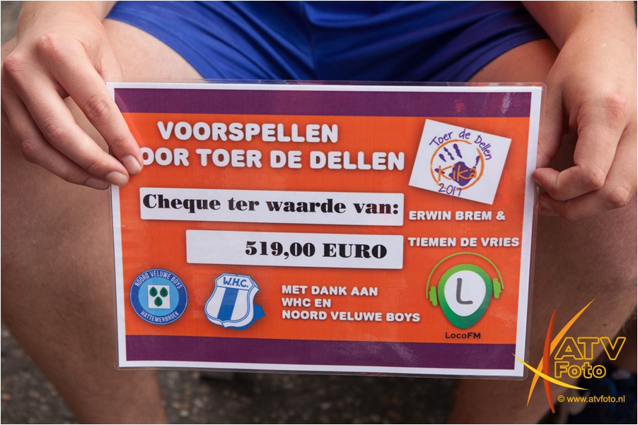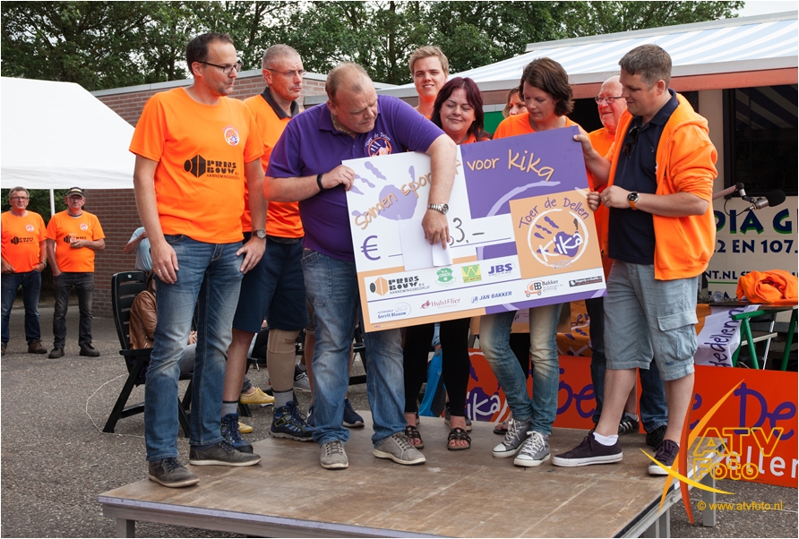 Wij hebben op de fiets mee gedaan aan de 6e editie van Toer de Dellen, samen geld inzamelen voor KIKA. Het mooie rondje vanaf sportpark Bovenmolen in Oldebroek, via Wezep, de Dellen en ’t Harde ongeveer 30 kilometer. Onderweg waren er 3 rustpunten. De eerste was direct over het spoor in Wezep, de tweede midden in de Dellen en de laatste precies bovenop de Knobbel. Op de Knobbel kreeg iedereen een appel aangeboden door de Boni. In de Dellen waren heerlijke broodjes hamburger te koop van slagerij Van Guilik. De lopers vervolgden hun weg naar beneden vanaf de knobbel langs de eperweg en de fietsers mochten gebruik maken van het defensieterrein. Er deden deze keer 1200 mensen mee, fietsen, lopen, eenwielers, skeeleren etc. Aan het einde van de middag werd het prachtige bedrag van € 61.663,00 bekend gemaakt.